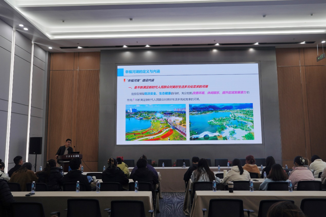 我院規(guī)劃院綜合與市場(chǎng)發(fā)展部主任胡劍以“新時(shí)期幸福河湖建設(shè)思路及典型案例”為主題,結(jié)合生動(dòng)案例,深入解讀"幸福河湖"的豐富內(nèi)涵:安全、生態(tài)、宜居、智慧、文化,是按照“全域推進(jìn)、重點(diǎn)打造”的總體思路,“點(diǎn)、線、面”開展多元化精品示范建設(shè),構(gòu)建全域幸福格局,展現(xiàn)人水和諧的寧波實(shí)踐。