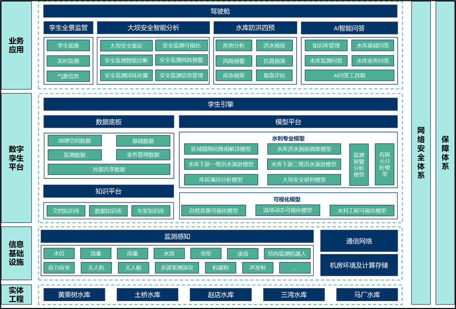 《方案》以黃栗樹等五座水庫為核心對象,進行了前瞻性的信息化總體設計。旨在通過引入先進信息技術,構建覆蓋水庫運行管理全生命周期的智能化體系。該體系以實現對水雨情、工情、供用水、水質及安全狀況等關鍵要素的精準感知、動態(tài)監(jiān)測、智能分析與高效決策為核心目標,全面提升水庫在科學調度、風險防控、管理效能與服務保障方面的綜合能力。主要建設內容涵蓋智慧業(yè)務應用、數字孿生平臺、信息基礎設施及網絡安全體系,共同構成層次清晰、協(xié)同聯動、安全可靠的現代化水利信息化總體框架,為區(qū)域水安全與可持續(xù)發(fā)展奠定堅實的數字基石。